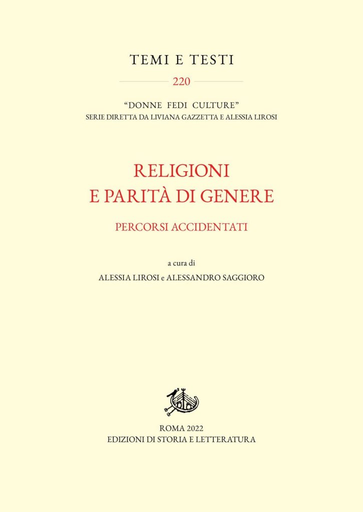 Alessia Lirosi e Alessandro Saggioro (a cura di), Religioni e parità di genere. Percorsi accidentati. Roma: Edizioni di Storia e Letteratura, 2022.